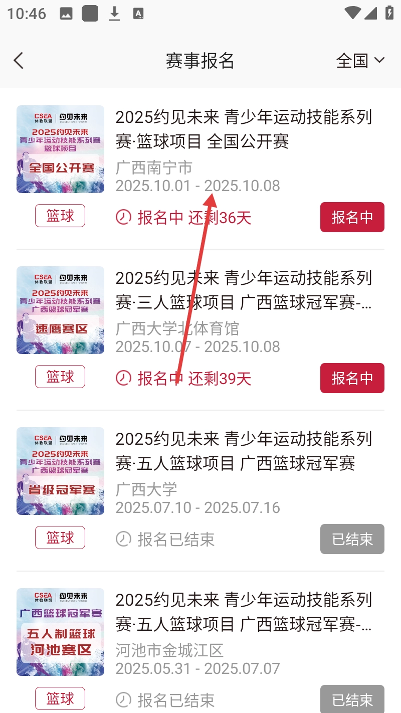 在赛事详情页面点击【赛事】,进入赛事报名页面。