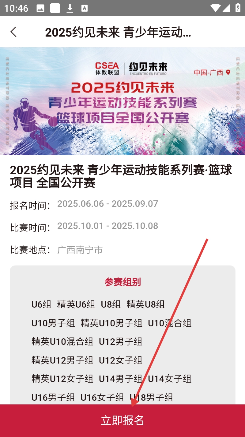 在赛事报名页面点击【立即报名】按钮,就能完成赛事报名流程。