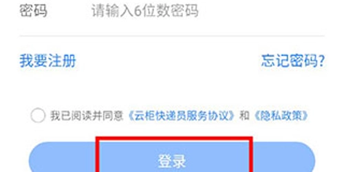 先打开云柜快递员客户端最新版,进行登录。
