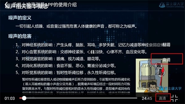 视频默认画质是标准清晰度,我们可以通过右侧的画质选项切换到高清模式,这样能让学习体验更优质。