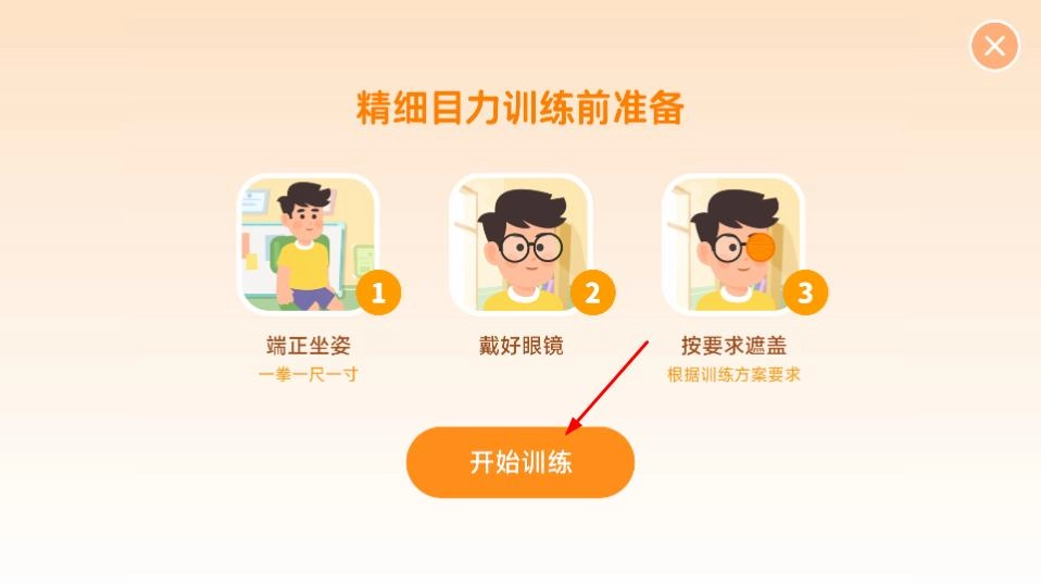 在训练前准备界面完成准备工作后,点击“开始训练”按钮,即可开展精细目力训练。