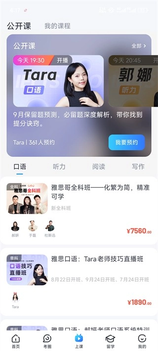 雅思听说读写四科的顶尖名师直播公开课可免费参与,互动讲座每天都会直播开课