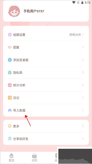 输入“快应用-大姨妈来了”获取提取码,提交后就能导入,要注意数据只能同步一次,请谨慎进行操作。