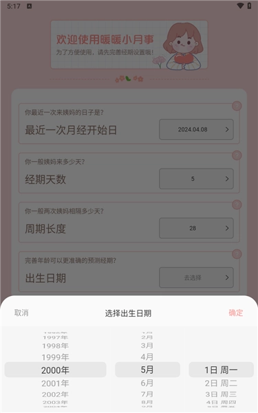 这是一款专为女性朋友打造的贴身健康管理工具,能够帮助记录月事情况,还可以预测下个月的月事时间。