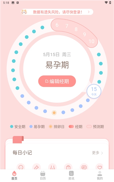 记录生理周期的各类不同数据,针对最全的数据信息及时的查看。