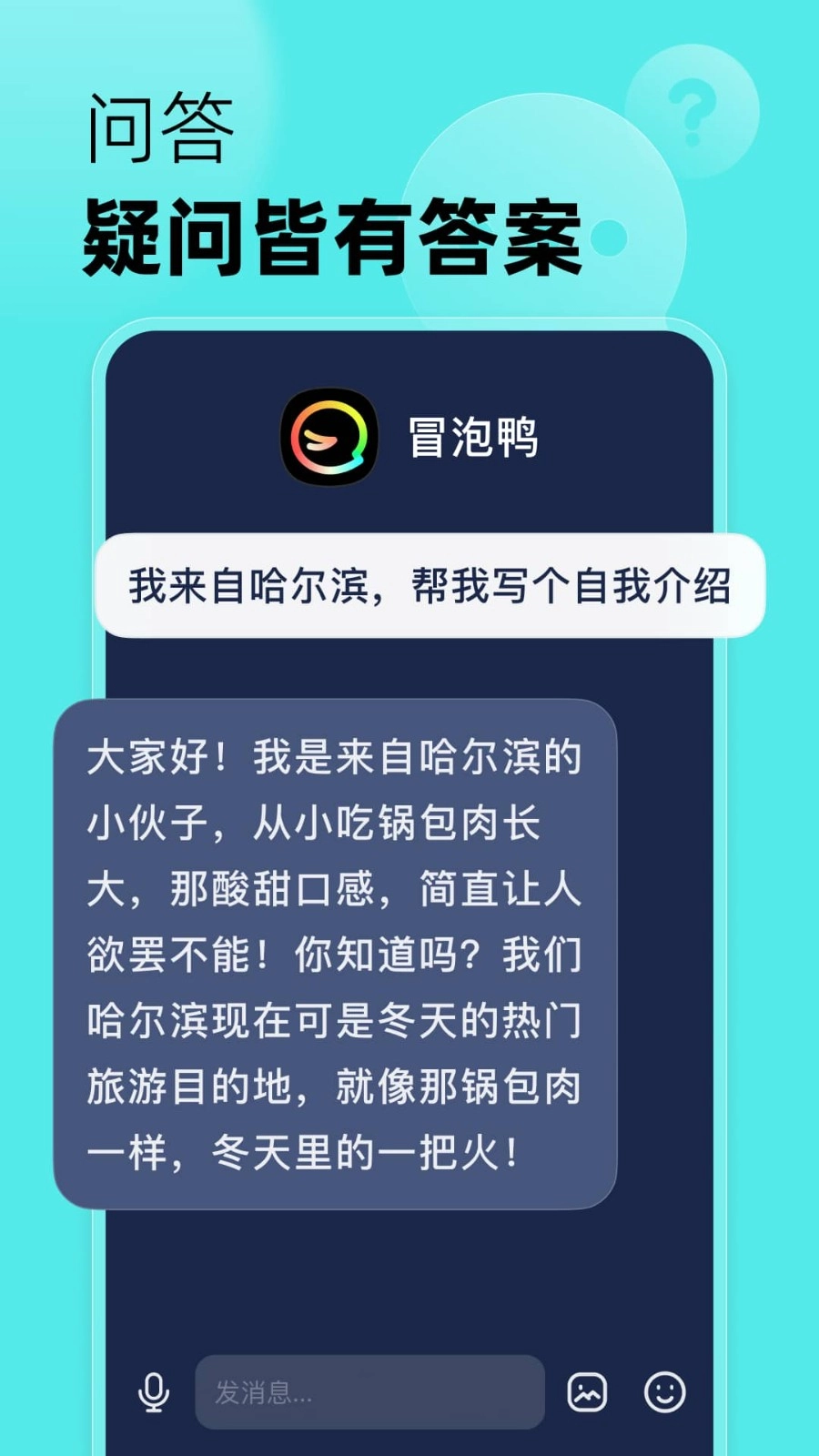 真实有趣:冒泡鸭的回复自然又有趣,能让用户体验到真实的对话感。