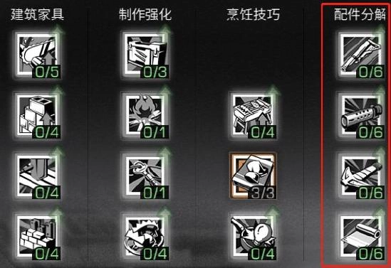 制作熟练度达到Lv38的幸存者可学习该技能,技能等级提升后,销毁分解轻型武器专属配件时,最高能有15%的概率额外获取1个机械材料。