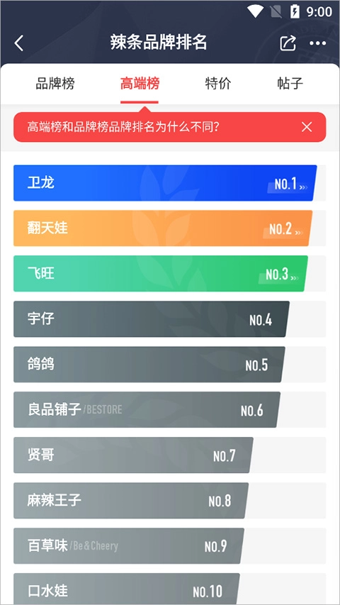 此时就可以得出辣条品牌的排名榜单