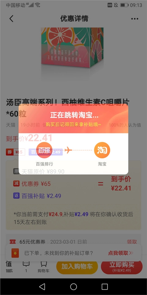 用户点击该按钮后就会跳转至淘宝中进行下单付款
