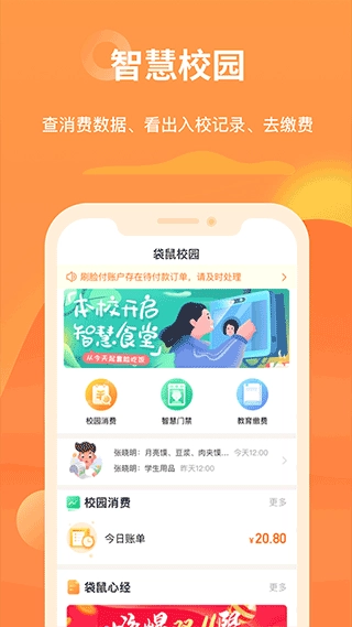 袋鼠校园手机版是一款面向学校师生与家长群体打造的智能化校园生活服务应用。该应用整合了校园支付、家校沟通、校园资讯、学生健康管理等多元功能,致力于构建便捷、高效且安全的校园生态系统,进而丰富校园生活体验,强化家校之间的紧密联系。