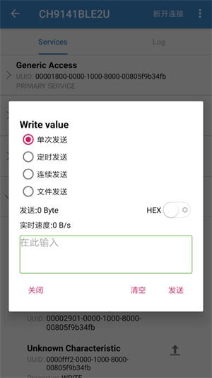 BLE调试助手兼容多种蓝牙协议,可实时扫描并呈现周边BLE设备及其信号强度,能便捷连接目标设备,查看设备的服务与特征值,执行数据的读取和写入操作。