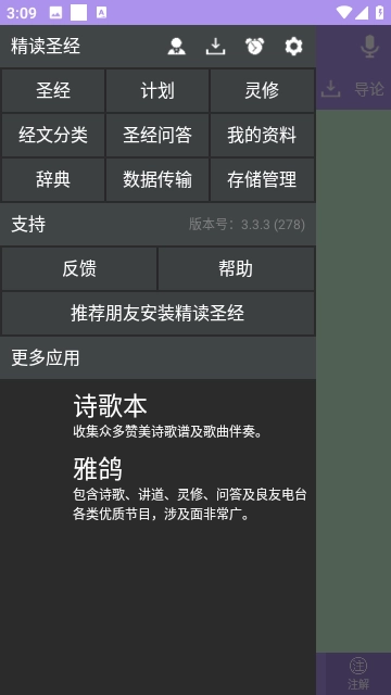 辅助冥想:协助用户借助经文进行冥想,探寻奥义,默想上帝的旨意。