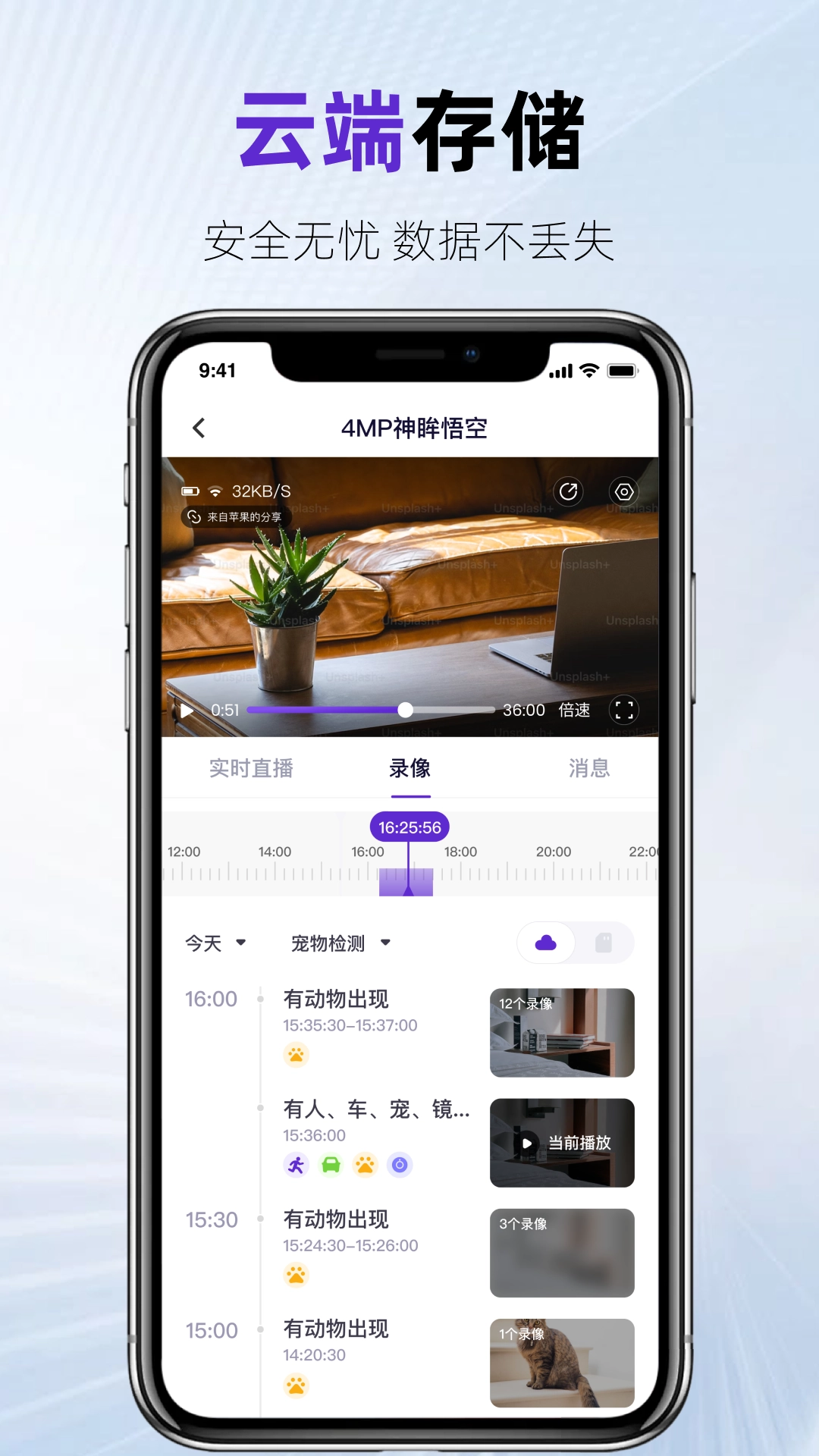 实时查看监控画面,保障对环境的全方位掌控。双向语音通话功能让用户能与监控区域直接交流,增强了互动性。当事件发生后,借助回眸功能可快速回放事件前的关键视频,这在安全监控领域尤为关键。神眸亦提供多种存储方案,用户可依据自身需求挑选合适的存储方式,确保监控数据的安全与便于管理。