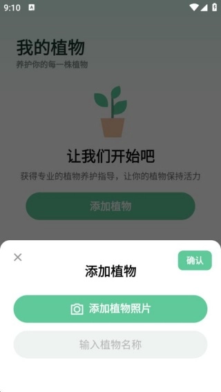 点击“添加植物”按钮,直接上传植物照片并填写植物名称,即可完成添加操作。