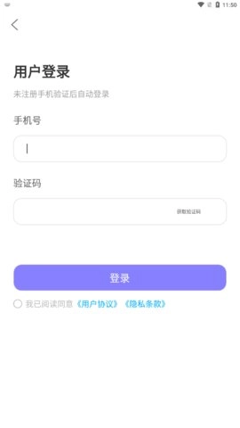 输入手机号,获取验证码,勾选协议,点击登录;未注册手机验证后自动登录。
