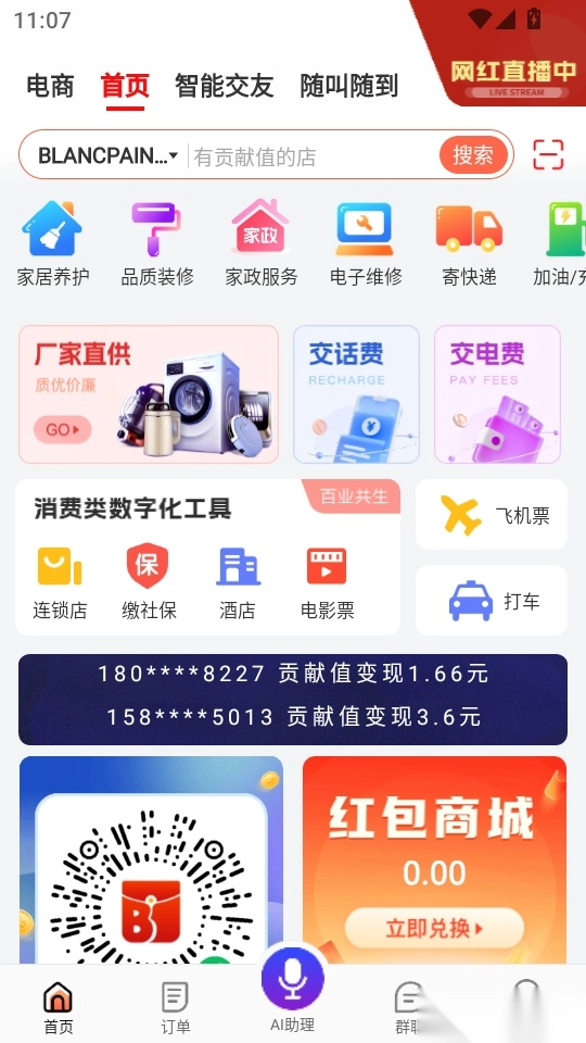 电子红包最新版是一款聚焦数字生活商城功能服务的应用软件,平台整合了海量本地生活服务资源,外卖点餐、酒店在线预订、电影票快捷购买、车辆加油充电等各类服务一应俱全;同时,软件还提供优质电商网购服务,汇聚各大头部电商平台资源,助力用户轻松选购高性价比特惠商品;此外,电子红包免费版还包含丰富的到家服务项目,全方位满足家政生活需求。对这款软件感兴趣的朋友,欢迎前往本站体验!