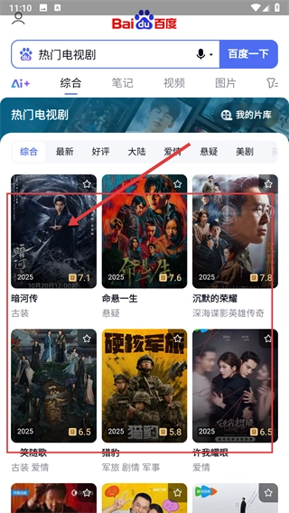 在热门电视剧页面,你可以浏览《暗河传》《命悬一生》等多部热门剧集,点击想要了解的剧集就能查看详情。