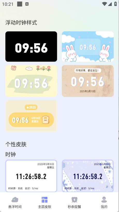 具备时钟和倒计时两种悬浮模式,支持在任意界面及手机桌面悬浮显示。