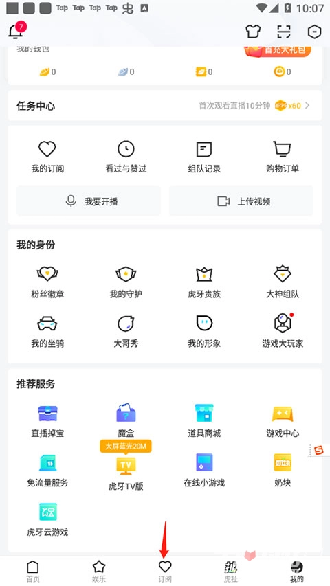 在本站安装虎牙直播,打开软件,点击"订阅"板块。