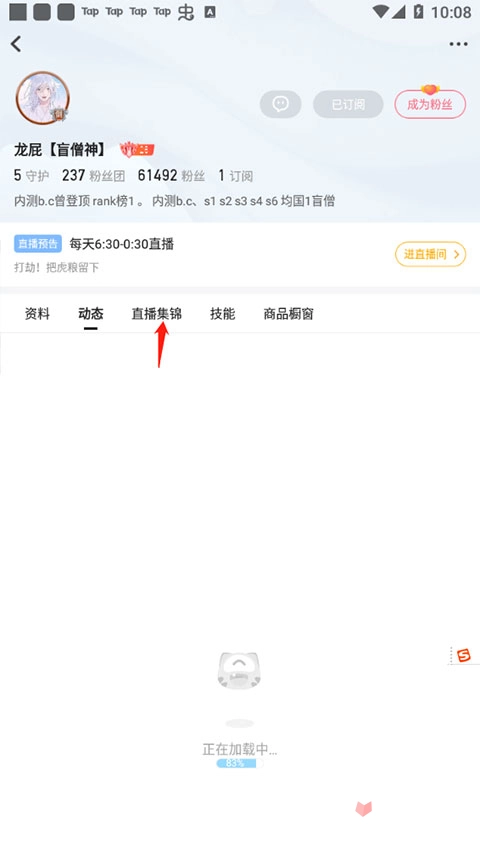 点击已关注的主播,点击进入他的主页。
