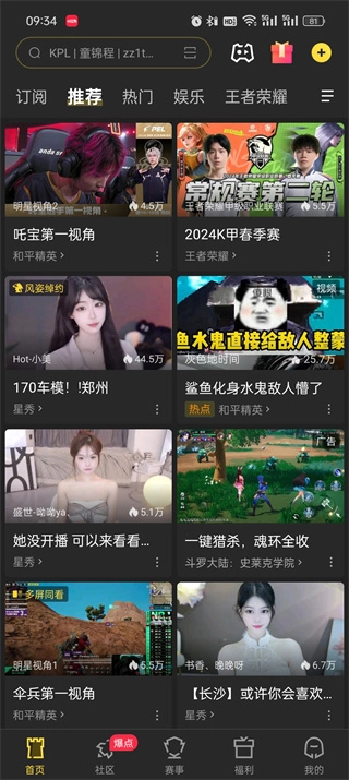 虎牙直播,也叫云视听虎电竞,包含网游竞技、单机热游、娱乐天地等多个频道,像当下热门的游戏和各类赛事都能在平台上观看直播。这里有上百款游戏资源,还有上千场赛事直播可供观看,而且支持一键查看回放功能,随时都能体验,快来使用吧!
