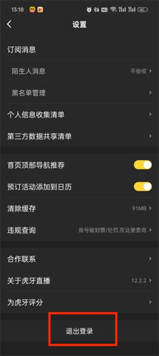 虎牙直播怎么退出登录