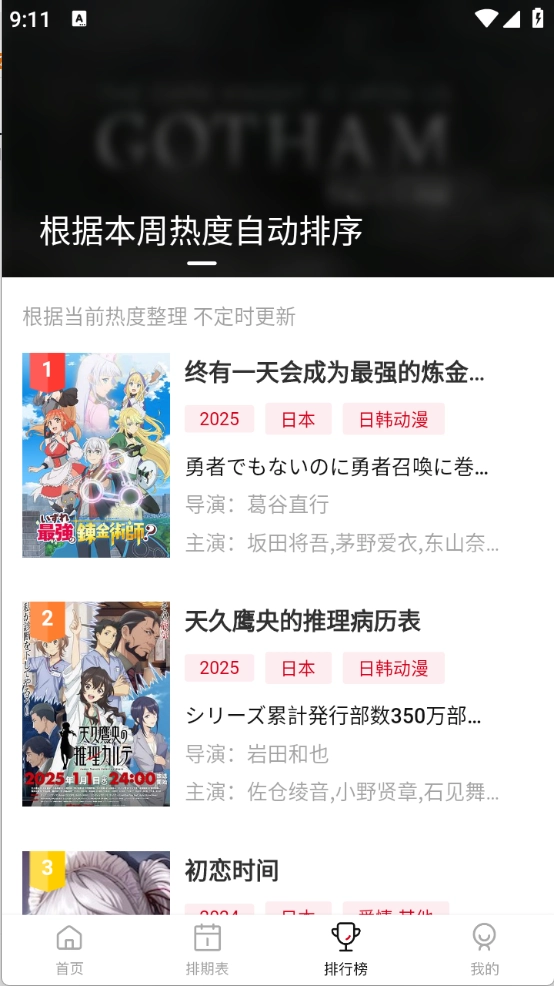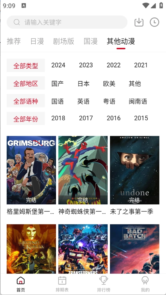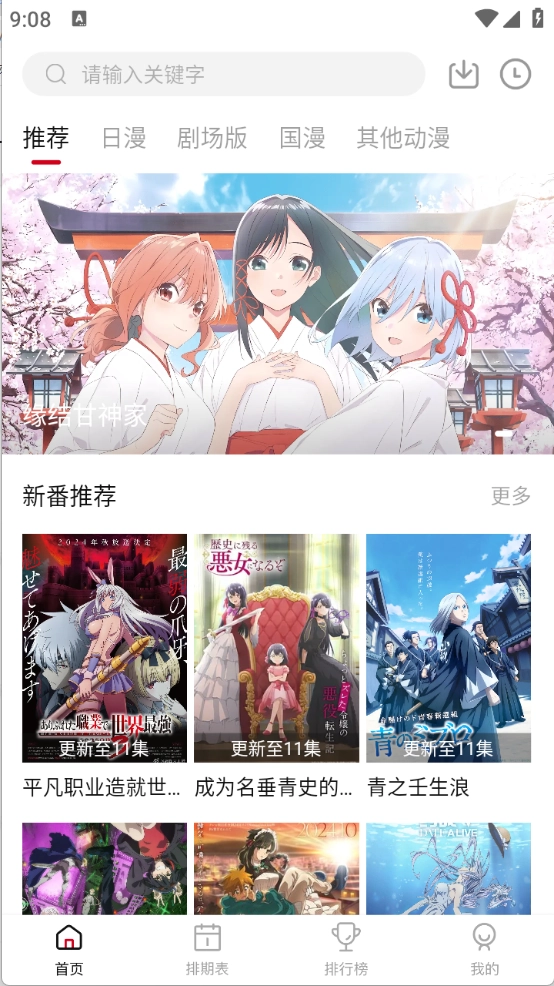 进入首页后,能看到丰富的动漫资源,涵盖日漫、韩漫和国产动漫等多种类型。