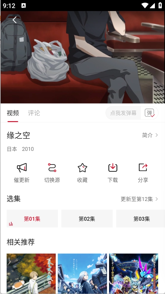 直接点开想看的动漫,可以选择集数、切换播放源。