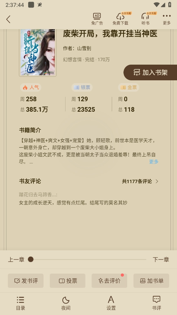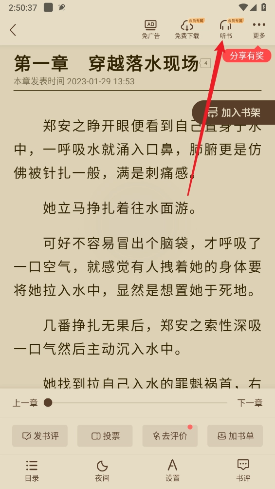 点击页面右上方的“听书”按钮就行,不过要留意的是,得先解锁会员才能免费收听书籍内容。
