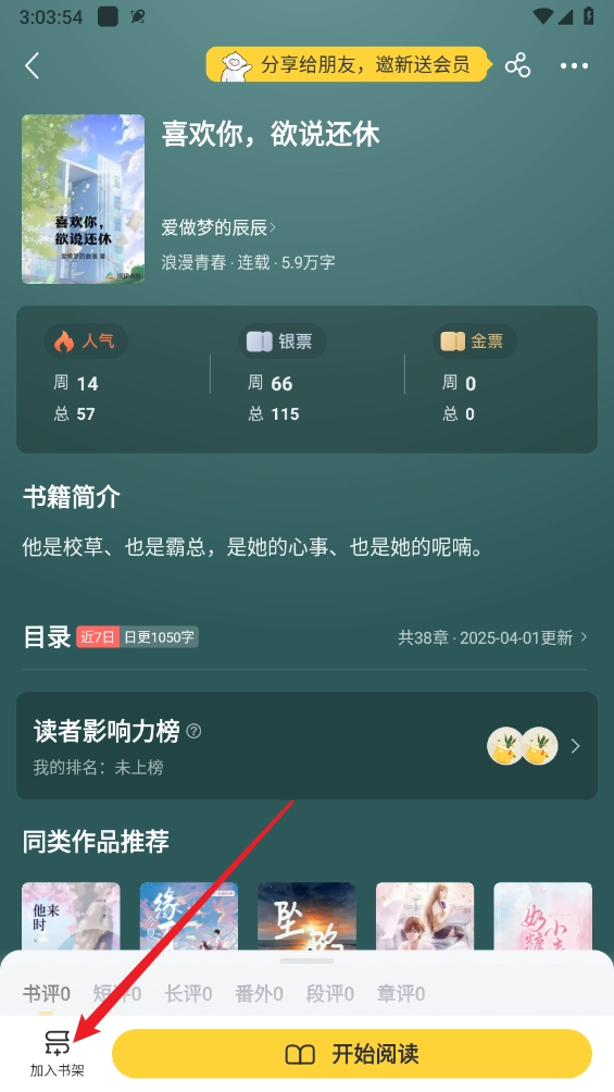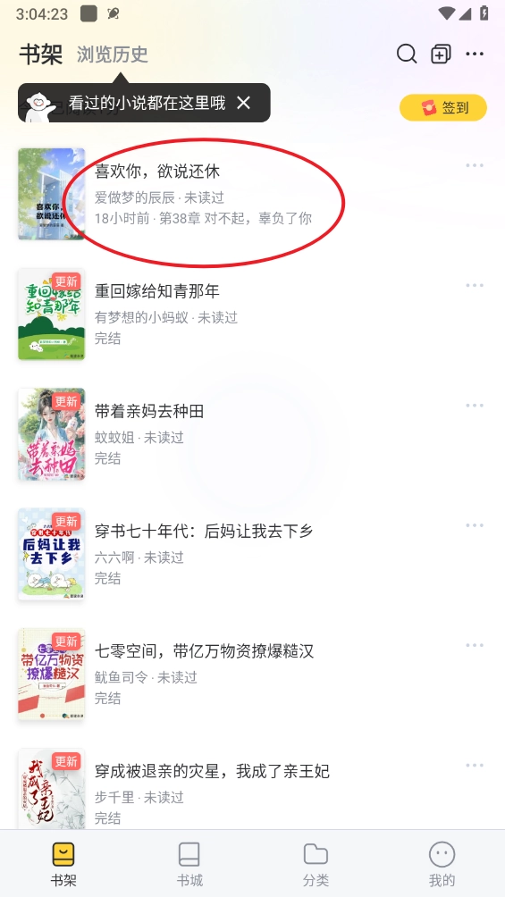 返回书架板块,就能看到已加入的目标小说,便于下次查看。