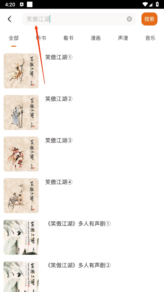 你可以直接搜索自己感兴趣的内容,不管是《倚天屠龙记》还是《射雕英雄传》,都能很容易找到,用起来特别方便。