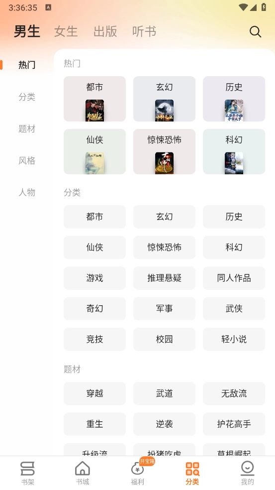所有小说都划分得条理分明,用户能够依据各类题材找到自己想看的作品。