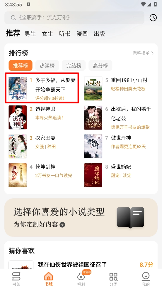打开秘读免费小说,在书城选择所需加入的书架进入。
