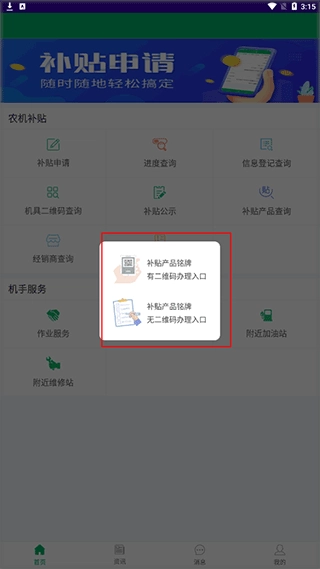 打开甘肃农机补贴,进入首页点击申请补贴。
