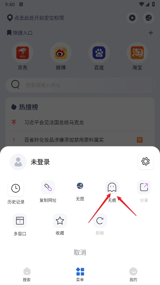 掌上浏览器怎么开启无痕模式