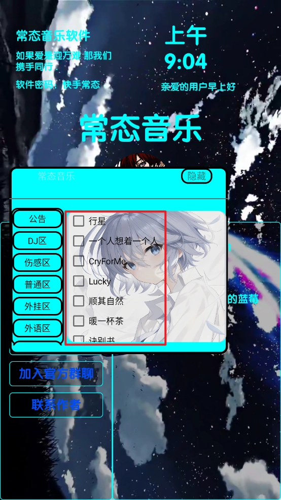 最后滑动左边栏目,即可选择喜欢的歌曲进行播放。