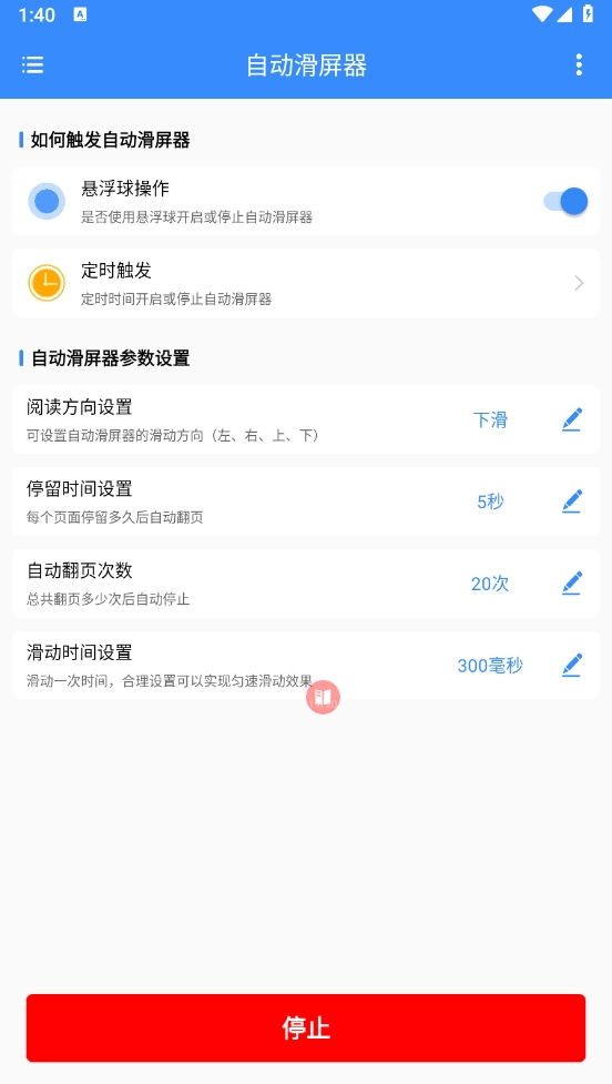 自动滑屏器是一款可实现屏幕自动滚动的软件,无论是阅读电子书时自动翻页,还是观看短视频时自动接续播放下一个视频,它都能轻松完成。特别是在需要长时间重复单一操作的场景下,该工具能显著减少手动操作的频率,有效缓解手部疲劳问题,并且支持通过一键操作快速完成滑屏参数的设置。
