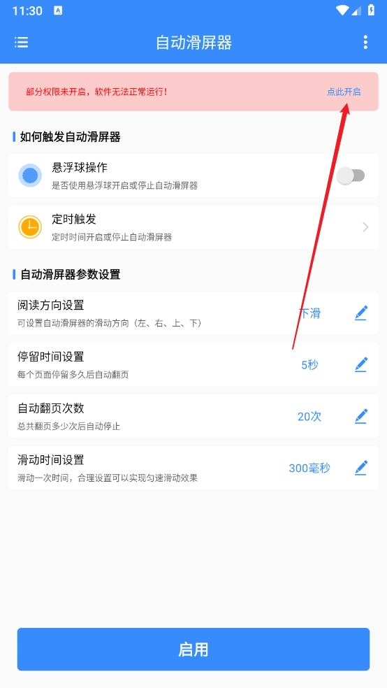 进入无障碍页面,点击自动滑屏器进入。
