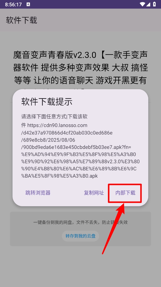 再次进入后点击对应按钮会弹出提示框,选择“内部”选项即可,也可以复制链接在浏览器中打开访问。