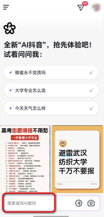 AI抖音作为抖音搜索的升级版,完整保留了抖音搜索的所有功能,并实现了抖音与AI技术的深度融合。它不仅能精准推送符合你兴趣偏好的内容,还能如同朋友般理解你的需求——只需输入关键词,AI抖音就会迅速为你匹配到最契合的信息,无论是美食探店、休闲玩乐还是各类实用攻略,都能在这里找到理想的搜索结果。