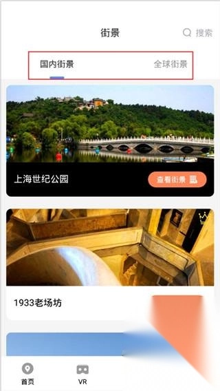 在“街景”功能里,能够分别查看“全国街景”与“全球街景”。