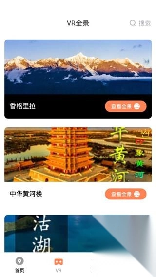 在“vr全景”中,可以查看很多景点的实景;