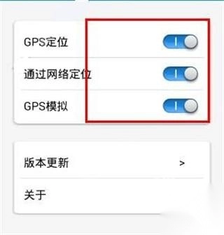 在设置界面中,开启GPS定位功能,同时启用通过网络定位的选项,并点击GPS模拟按钮,这样就可以了。