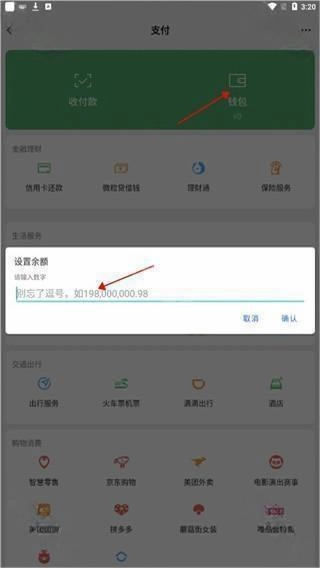 操作方式和微信一样,打开余额页面直接修改就行,红包转账功能在聊天界面里就能找到。