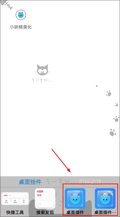 先回到手机桌面,接着长按桌面,等出现插件选项后,找到小妖精美化插件。