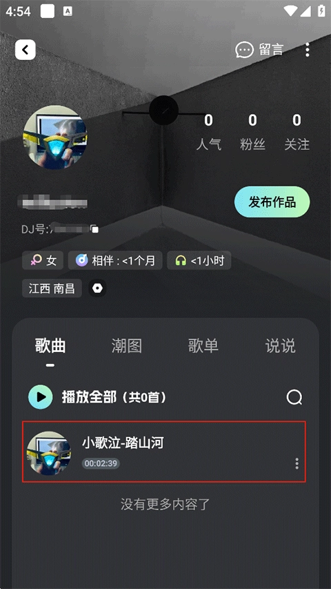 上传的音乐将会在您的个人主页展示。