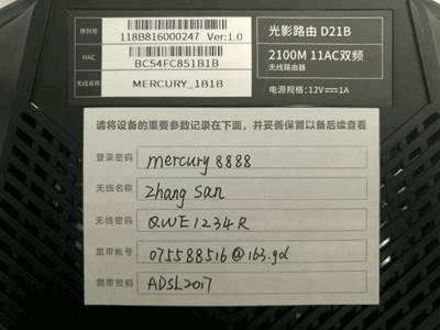 路由器管理员密码和无线密码常常容易被遗忘,所以Mercury路由器特意配备了一张小贴纸。建议您把设置好的相关密码填写在随产品一同配送的“路由器参数记录标贴”上,再将这张贴纸贴到路由器底部,这样日后管理起来会更方便。具体操作可参考下图: