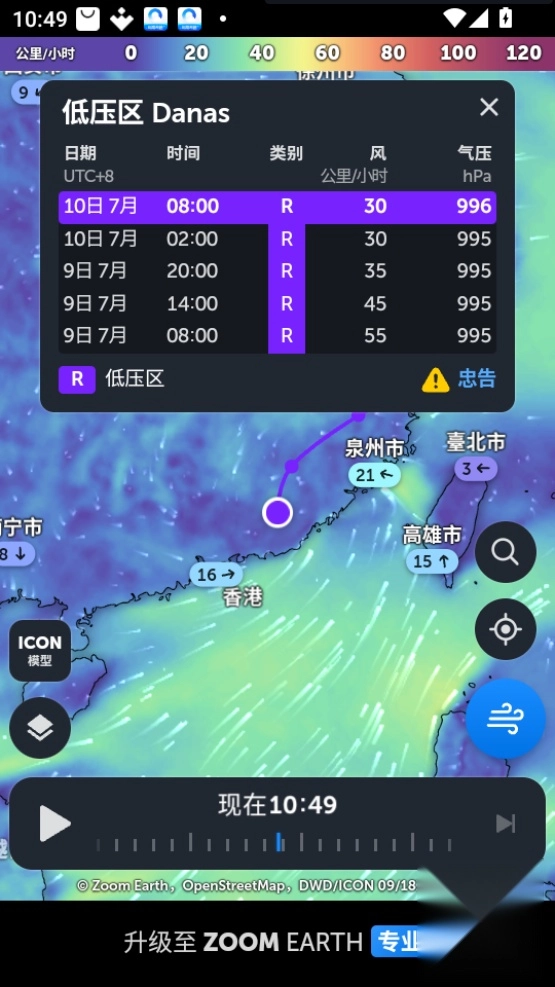 zoomearth怎么看台风,风眼