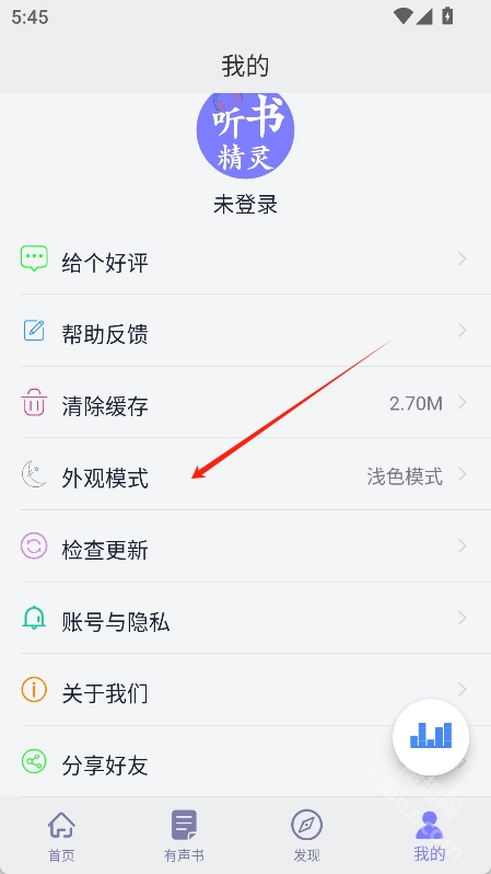 在“我的”页面中,能够完成“外观模式”的调整、“缓存数据”的清理以及“账号与隐私设置”相关的各类操作。