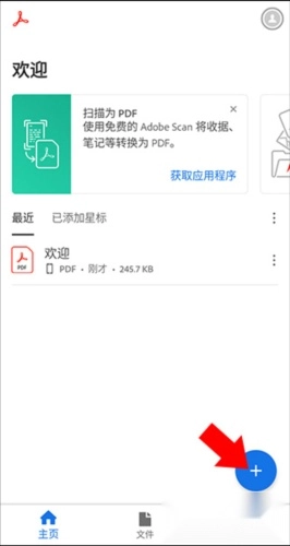 进入首页后,若需打开或创建PDF文档,点击右下角的“+”号即可。